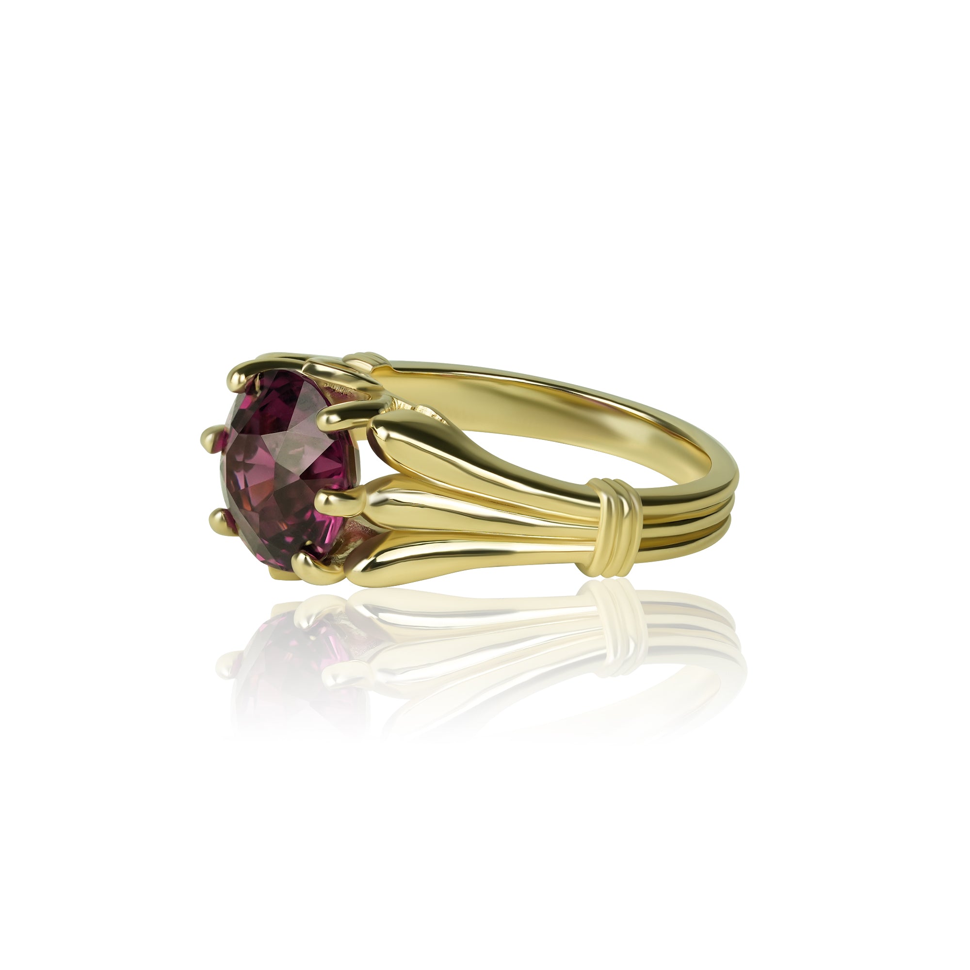 Kaina labai priklauso nuo kelių veiksnių: Jūsų žiedo dydžio, nes tai įtakoja aukso svorį, pasirinkto brangakmenio tipo ir dydžio, aukso prabos bei gaminio pločio ir storio. Kuo platesnis ir storesnis žiedas, tuo daugiau reikės medžiagų, kas gali padidinti kainą. Taip pat sudėtingesnis dizainas reikalauja daugiau darbo ir laiko, todėl ir kaina gali keistis priklausomai nuo šių aspektų.