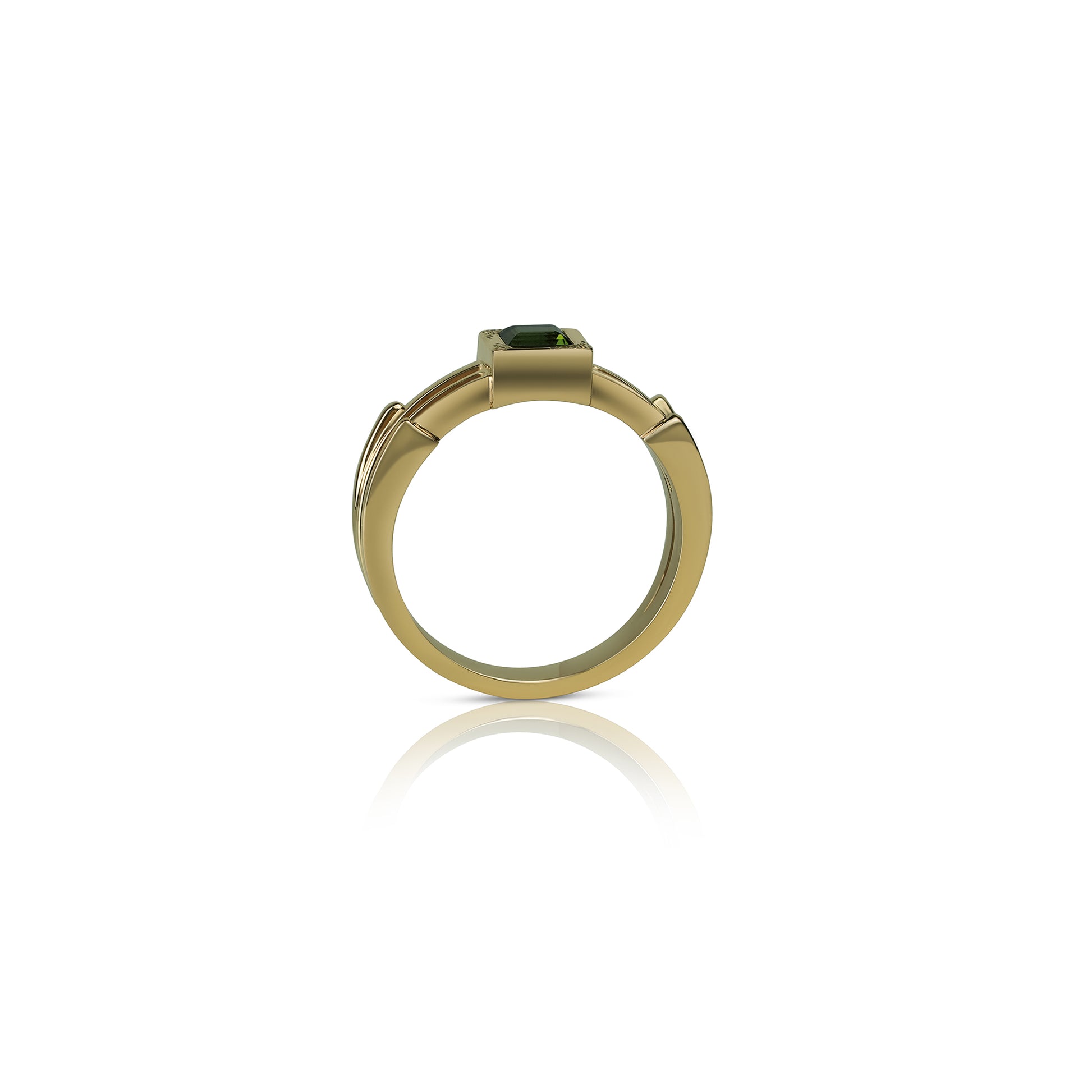 Išskirtinis geltono aukso žiedas su 0,5 ct turmalinu, skirtas ieškantiems modernaus, charakteringo ir elegantiško papuošalo. Tai subtilus, tačiau išraiškingas žiedas su brangakmeniu, tinkantis tiek ypatingai progai, tiek kaip sužadėtuvių žiedas.